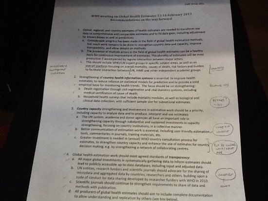 Horton concluded his stream of tweets with a snap-shot (see below) of the "Recommendations on the way forward" produced from this meeting, with notable emphasis on strengthening country health information systems and country capacity. But at first glance, these recommendations do not learn from the failures of making progress on country statistical capacity over the past two decades. The recommendations need clarification on what exactly “strengthening” of health information systems and country capacity means, or why it hasn’t already happened over the past twenty years. Recommendations made by academics and policymakers without extensive leadership from countries run the risk of being ineffective.