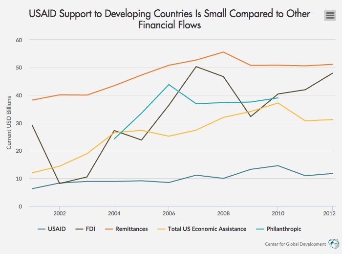 ,USAID,FDI,Remittances,Total US Economic Assistance,Philanthropic 2001,6.26,29.03,38.22,12.00, 2002,8.31,8.11,40.11,14.39, 2003,8.87,10.49,40.01,18.87, 2004,8.85,27.23,43.40,26.45,24.20 2005,9.11,23.81,47.25,27.31,33.50 2006,8.48,36.34,50.76,25.18,43.80 2007,11.13,50.27,52.65,27.38,36.90 2008,9.97,46.66,55.53,31.98,37.30 2009,13.24,32.26,50.72,34.09,37.50 2010,14.56,40.41,50.78,37.17,39.00 2011,10.91,41.95,50.56,30.71, 2012,11.74,47.93,51.09,31.20,