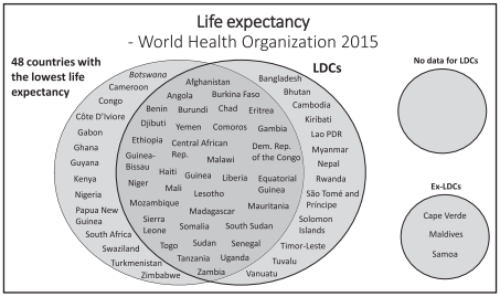 A recent paper by Marcin Wojciech Solarz and Małgorzata Wojtaszczyk makes a similar point, showing the overlap between LDCs and other poor countries on a range of indicators: for every indicator (including for example life expectancy and life satisfaction) there is a group of non-LDC countries that do worse than LDCs.