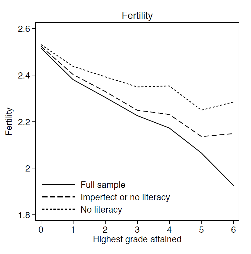 Across 50+ countries, more schooling—even low-quality schooling—was associated with lower fertility