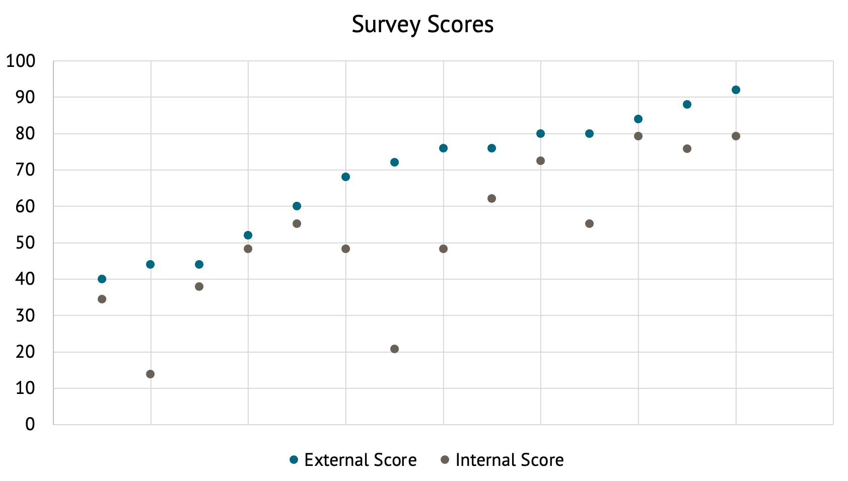 Across the board, DFIs’ internal scores were lower than their external scores, with the average external score sitting at 68 percent, compared to 52 percent on the internal side. Differences ranged from 4 to 51 points, and even a DFI’s appearance as a top performer regarding external policies and practices did not imply an equally strong performance on the internal side.
