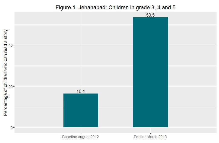 The numbers speak for themselves: Jehanabad’s increase in story readers from 16.4 percent to 53.5 percent in eight months of teaching at the “skill-level” rather than “grade-level” is equivalent to almost three years of “regular” progress in Bihar.
