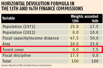 We recognise that States have an additional responsibility towards management of environment and climate change, while creating conditions for sustainable economic growth and development. Of these complex and multidimensional issues, we have addressed a key aspect, namely, forest cover, in the devolution formula. We believe that a large forest cover provides huge ecological benefits, but there is also an opportunity cost in terms of area not available for other economic activities and this also serves as an important indicator of fiscal disability. We have assigned 7.5 per cent weight to the forest cover.