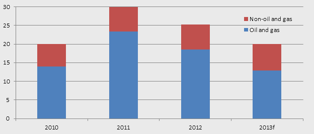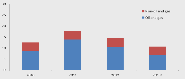 2013 data are forecasts as at March 2014.