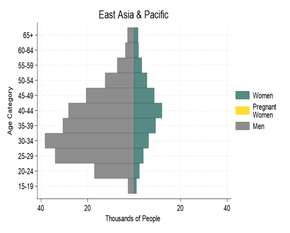 But even in other regions—East Asia and the Pacific, Europe and Central Asia, Latin America and the Caribbean, and South Asia—PEPFAR support provided ART to tens of thousands of men and women. Interestingly, it provided ART to more men than women in East Asia and the Pacific, while in the other three regions, women remain the largest recipient group. These trends reflect how concentrated the HIV epidemic is in sub-Saharan Africa and the persistently disproportionate vulnerability of women and children.