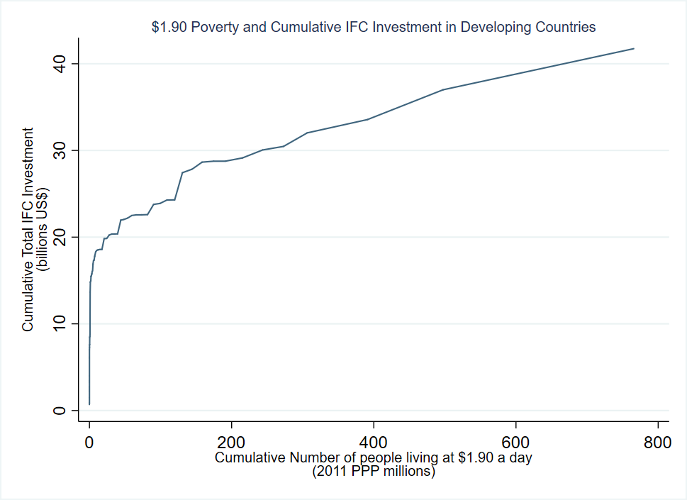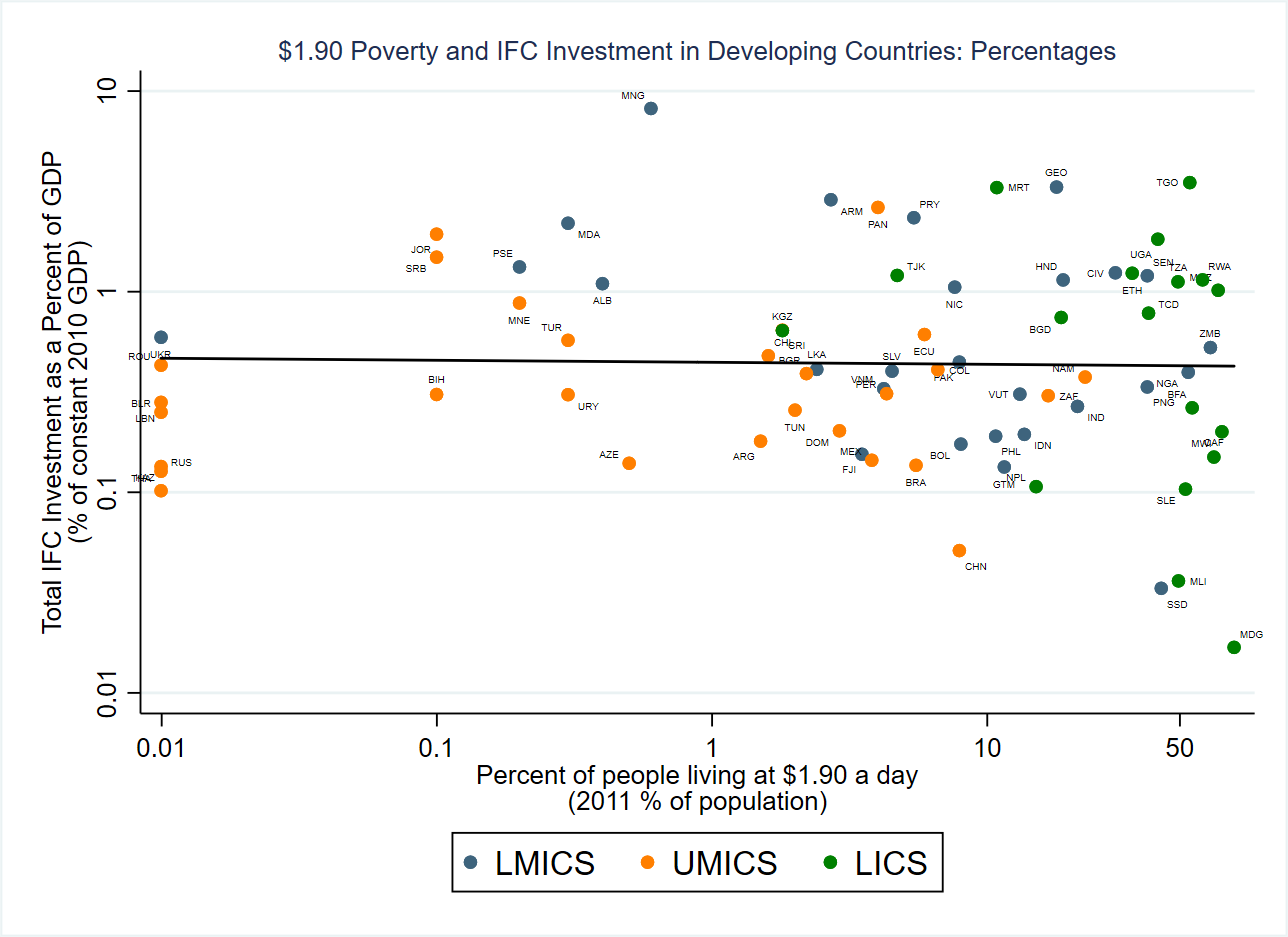 That leaves another defense from the institution: that the IFC is focusing within countries on investments that better target poverty than the country-level statistics suggest. Once again we'd welcome the IFC publishing the necessary data to test that idea, but still question if a choice to invest more in richer countries focusing on a small share of poor people is the most powerful approach for an institution supposedly so focused on ending extreme poverty.