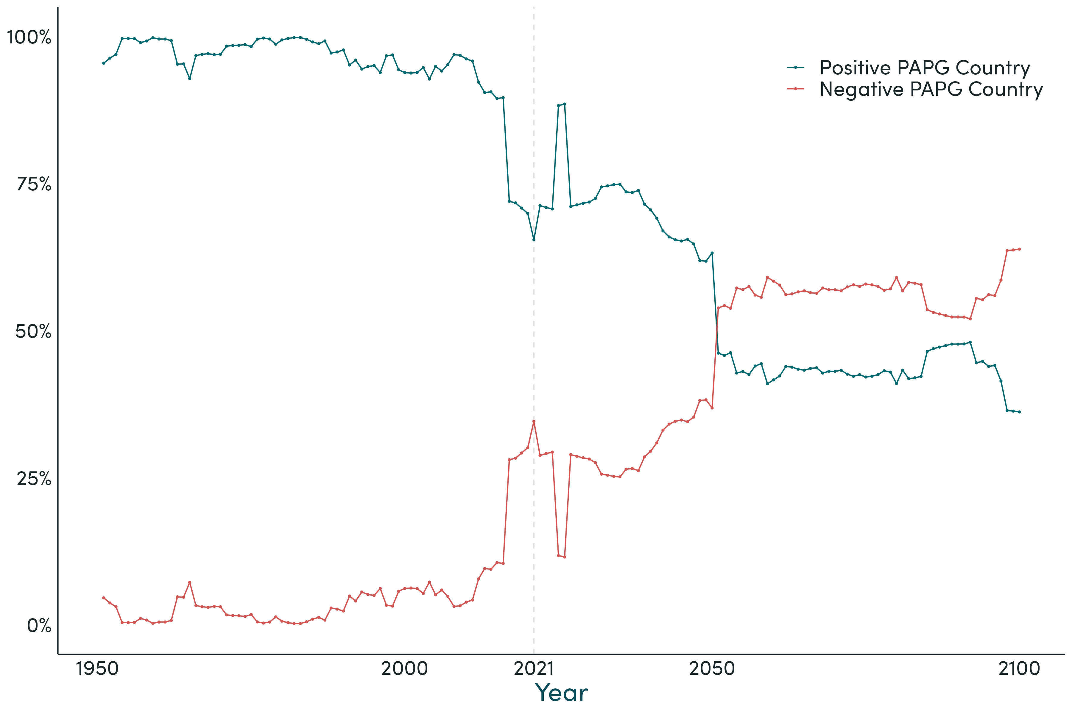 Figure 2: Proportion of world population in positive and negative working age population growth countries