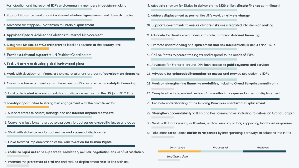 FIGURE 3. Progress on implementing the Secretary-General’s Action Agenda on Internal Displacement